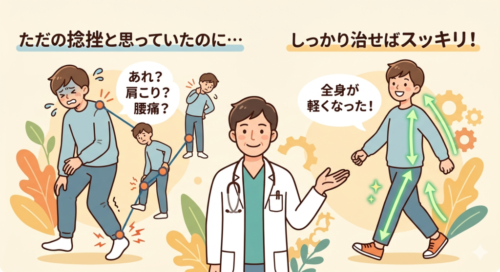 「最近、なぜか肩こりがひどい」 「湿布を貼っても腰痛が治らない」 その原因、実は**「昔やった、あの捻挫」**にあるかもしれません。足首の崩れは、全身の不調の「入り口」なのです。