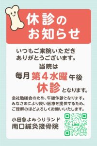 本日・第四水曜日は会社勉強会の為、午後休診となります。