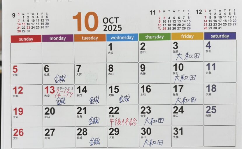 10月の予定表ができましたので、お知らせいたします。